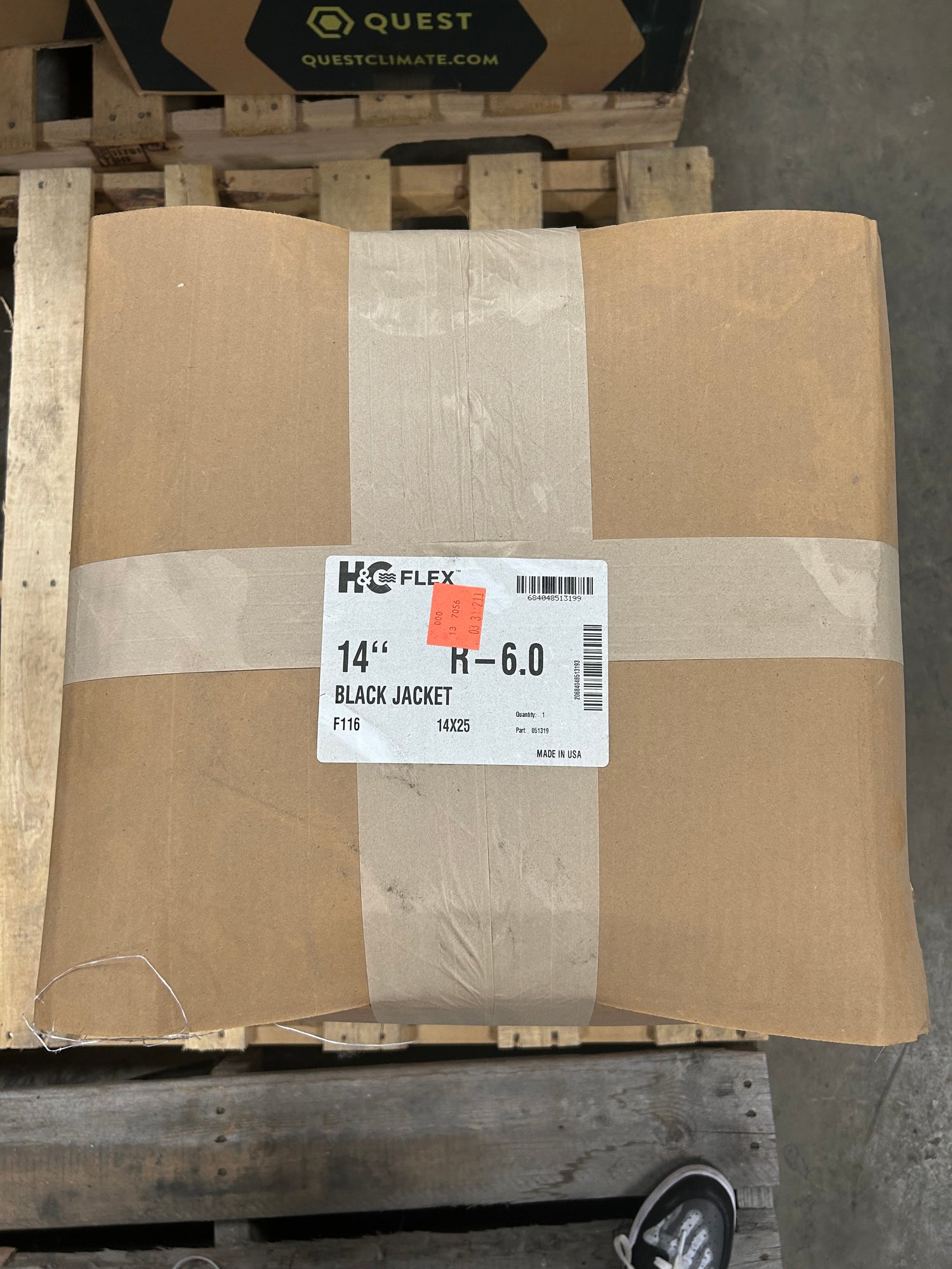 14 in. x 25 ft. Insulated Flexible Duct R6 Silver Jacket is used in standard Heating and Air Conditioning (HVAC) systems and some venting applications. The duct has R6 insulation which contains 33% more insulation than the standard R4.2 product. This additional insulation provides greater thermal efficiency to save energy. The product is also covered in a heavy duty, silver jacket for durability.